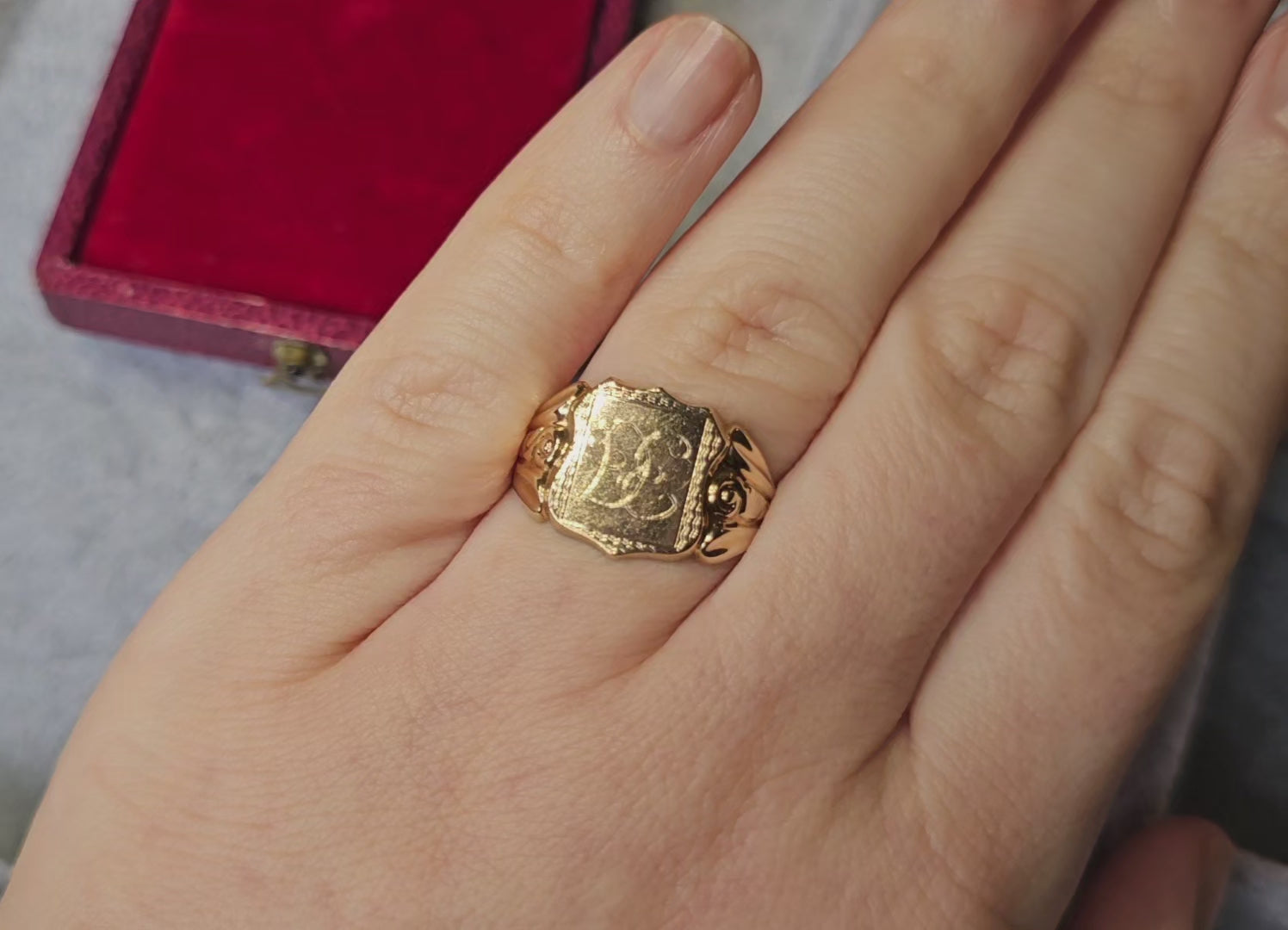 I have freshly buffed and polished this gorgeous signet and I have deliberately left the charming patina behind, for me, it adds character to gold that tells a story of it's extensive history.